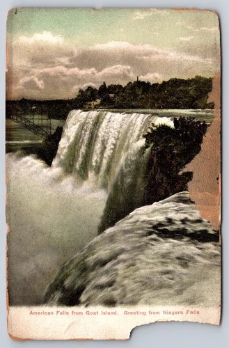 Postcard Niagara Falls View American Falls from Goat Island USA [Damaged]