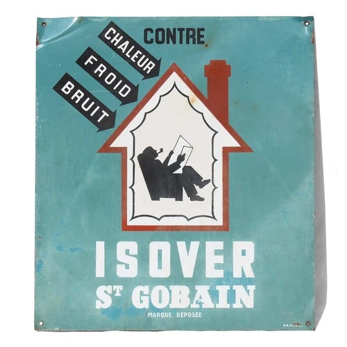 Antique 40cm x 45cm Unenamelled Sheet Metal Advertising Plate / Isover St Gobain
