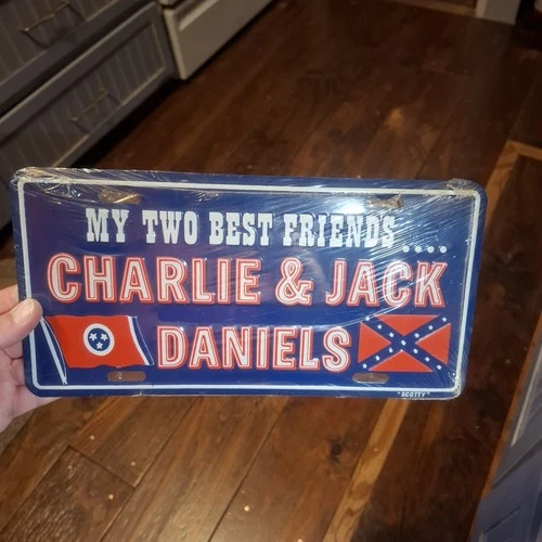 NOS Vintage My Two Best Friends Charlie & Jack Daniels License Plate RARE