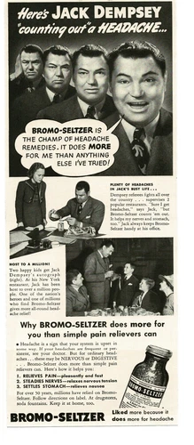 1940 Bromo Seltzer Jack Dempsey Boxer Vintage Print Ad