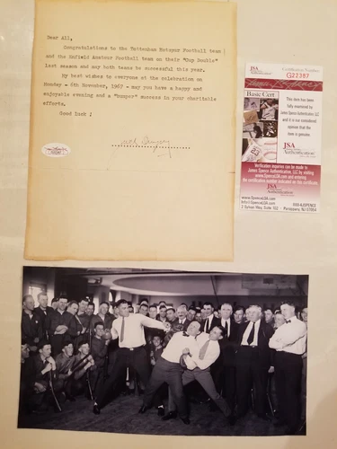 RARE 1967 Signed Jack Dempsey JSA Letter Tottenham Hotspur Futball Euro Champs