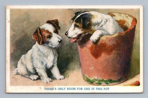 Antique England Comic Postcard Two Terriers Jack Russell Dog 1910s