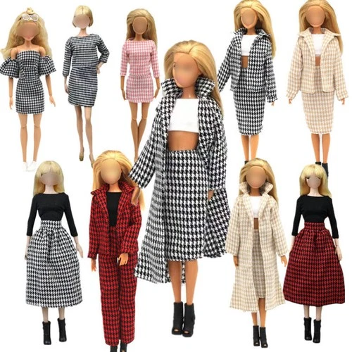 1/6 Doll Clothes Outfit Jacket Coat Skirt Houndstooth Style 11.5" Doll Dress Toy