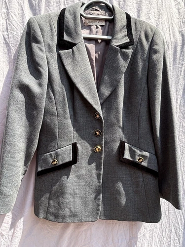 Ladies Jacques Vert Grey Blazer / Jacket Gold Buttons Size Uk 10 Good Cond