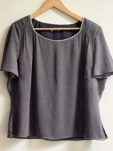 Women's Jacques Vert Grey & Silver Polka Dot Blouse With Short Sleeve Size 18