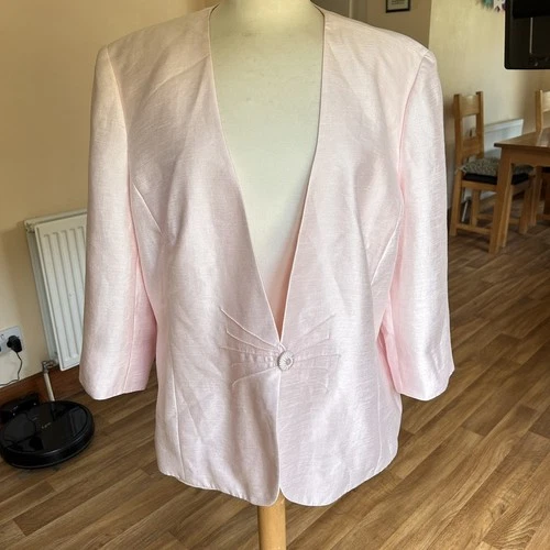 Jacques Vert Mother Of The Bride Satin Baby Pink 3/4 Length Sleeve Jacket Sz 22