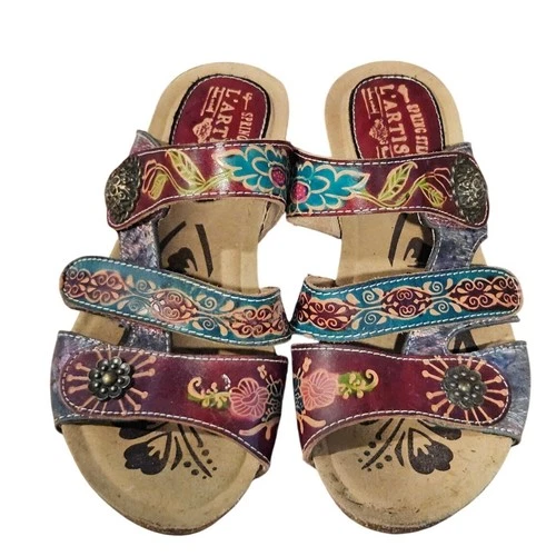 Spring Step L'Artiste Jamila Leather Floral Wedge Sandals Multi Color Women 36 6
