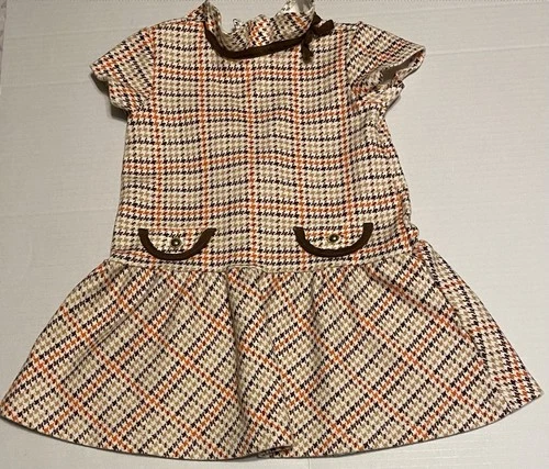 Janie And Jack Houndstooth Plaid Ponte Dress Sz 18-24 Months Rust Soft Stretch