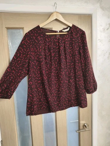 Jasper Conran Womens Blouse top Size 18 Black Purple 3/4 Sleeve Casual