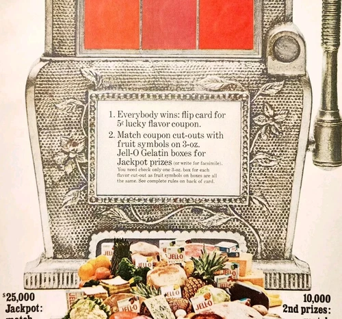 1966 Jell-O Slot Machine Dessert Sweepstakes Advertisement Jackpot Prizes DWLL9