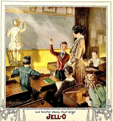1922 Jell-O Dessert School Lithograph XL Advertisement 14 x 11" Gelatin