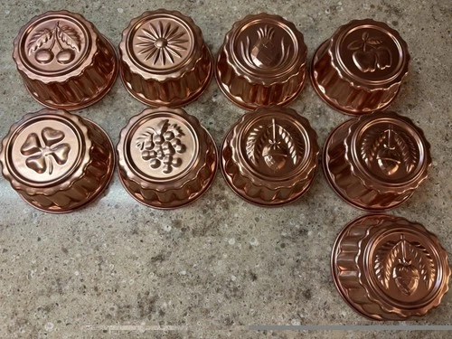 Set Of 9 Mini Jell-O Copper Color Molds Varying Designs