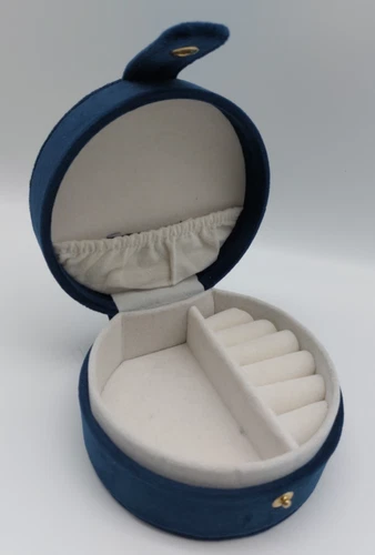 Primark Blue Velvet Round Jewellery Box " G" Size 10.5x5 cm