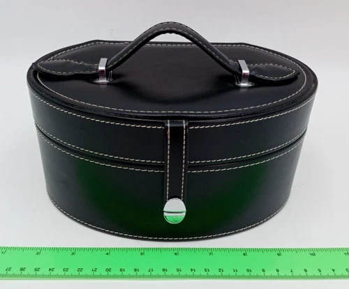 Black Faux Leather Travel Jewellery Box Mirror Top Handle Size 22 x 13 x 11 cm