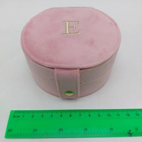 Primark Pink Velvet Round Jewellery Box " E" Size 10.5x5 cm