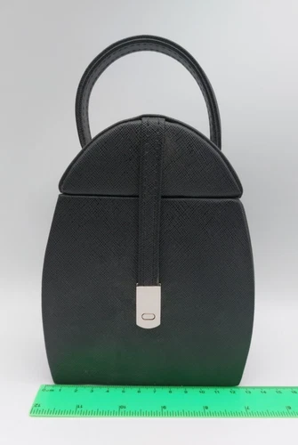 Black Faux Leather Travel Jewellery Box Mirror Folding Top handle 12x16x6 Cm