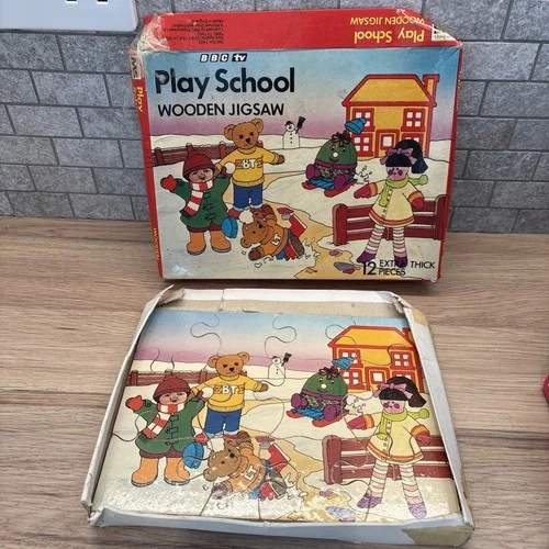 Vintage 1962 BBC TV Play School Wooden Jigsaw 12 Pieces Complete