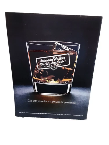1974 Johnnie Walker Ad Vintage Magazine Black Label Glass Whiskey Print