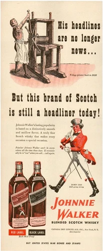 1944 Johnnie Walker Whiskey Red Label Black Label Printer Vintage Print Ad