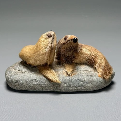 Vintage J.M. & G. JOHNSON Shetland 'SEALS BASKING ON ROCK' Handcrafted Souvenir