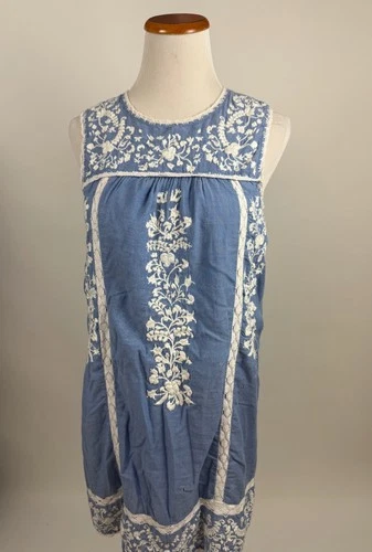 JOIE blue embroidered sleeveless shirt dress Women's S