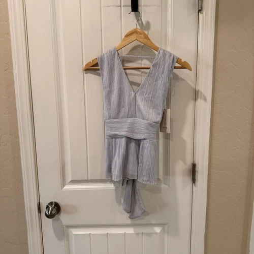 Joie Women’s XS Light Blue Metallic Sleeveless Peplum Top Tie Back NWT