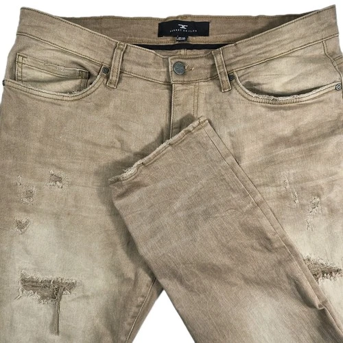 Jordan Craig Jean Sean Fit Mens 36x34 Tan Shreds Tribeca Distressed Denim