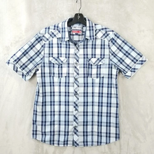 Jordan Craig Shirt Men Large Blue Plaid Modern Cowboy 100% Cotton Short Sleeve