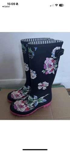 Joules Women's Printed Wellies Navy Floral Roses- Adult 8