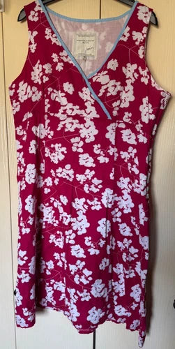 Joules - Raspberry Pink Sleeveless Dress - Size 18 - Light Blue Trim