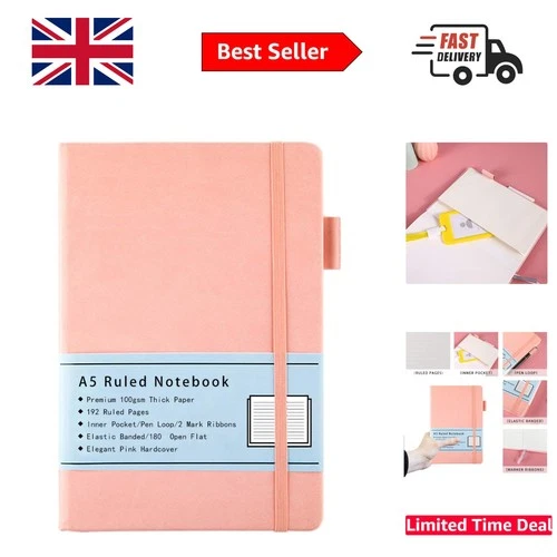 Elegant A5 Ruled Journal with 192 Pages, Elastic Band & Inner Pocket - Pink