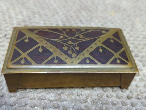 Jugendstil /Art Nouveau Erhard & Sons Söhne Brass Walnut Art Nouveau Stamp Box