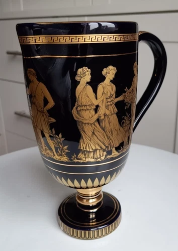 Spyropoulos Greek Black Large Pitcher Jug Vase - 24 K Gold Trim