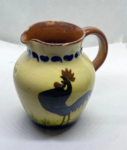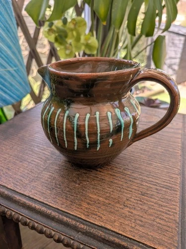 Vintage brown and green drip glaze 10cm tall jug 386g