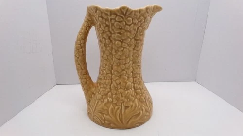 Vintage Sylvac Hollyhock Jug No. 1962 Large Satin Beige Floral Pitcher Vase Old