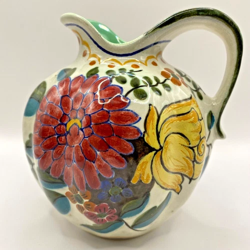 VTG Gouda Pitcher Pottery Gristha Royal Zuid- Holland Ornamental Floral Jug RARE
