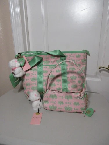 NEW JUICY COUTURE JUICY FESTIVAL TOTE and SHOULDER BAG SET PINK DIAMOND RETRO