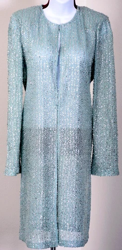NWT ST.JOHN Women's Green Julep Metallic Silver Shimmer Topper Long Jacket Sz M