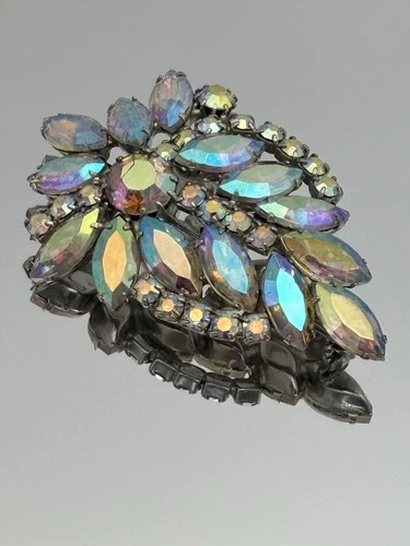 Vintage AB Rhinestone Wreath Brooch Silver Tone 1950s Mid Century Jewelry