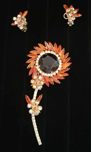 Vintage 1960s Juliana Delizza &Elster Sunflower Brooch and Earrings Set -- RARE!
