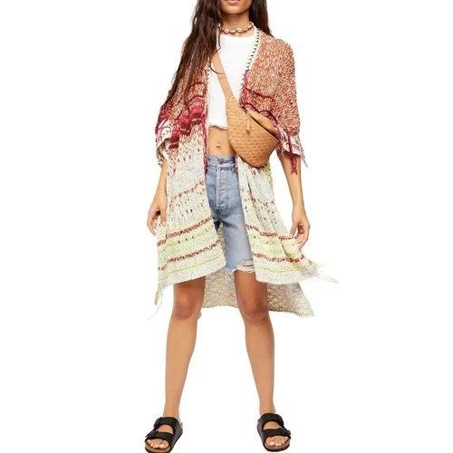 Free People Skies The Limit Kimono Cardigan Chunky Knit Fringe Medium