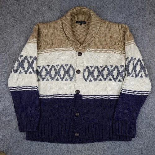 Filippo Novelli Sweater Mens XL Tan Alpaca Wool Shawl Collar Cardigan Knit Italy