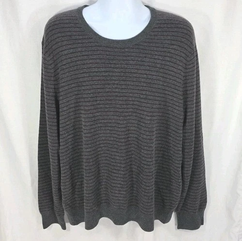 Vince Sweater Mens 2XL XXL Gray Wool Cashmere Blend Pullover Stripe Crew Neck