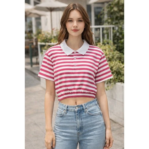Jolie & Joy Striped Crop Top Old Money Button Front Cotton Pink White Women's XL