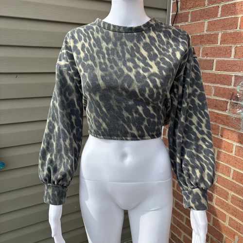 JOLIE AND JOY LEOPARD PRINT TIE BACK BALLOON SLEEVE SWEATSHIRT TOP SIZE XL