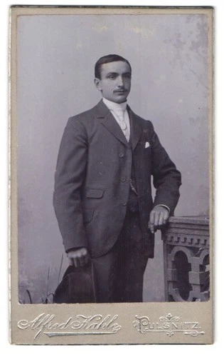 Photograph Alfred Kahle, Pulsnitz, at Wettinplatz, young man in fashionable quantity