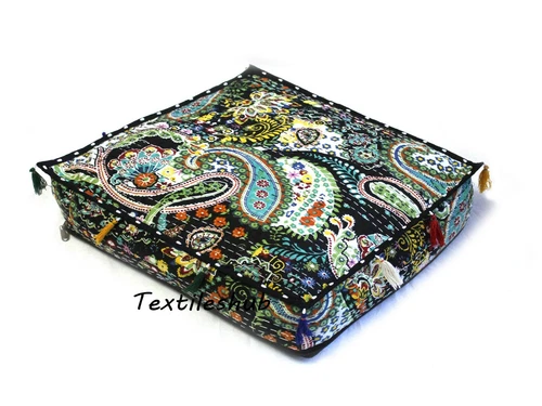 Indien Black Paisley Home Décor Square Handmade Kantha Floor Cushion Cover 20"US