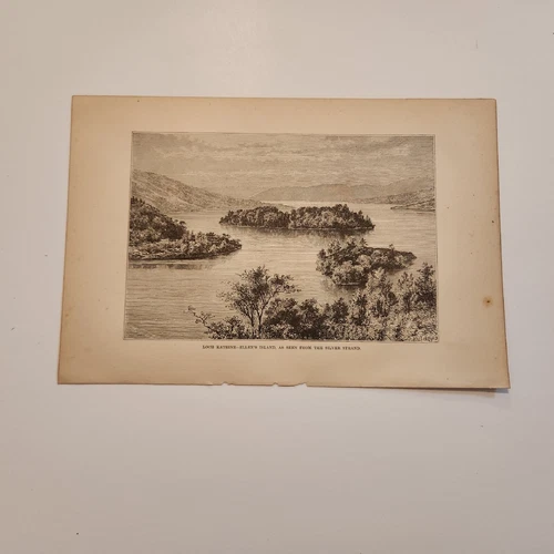 Loch Katrine Ellen's Island Scotland C. 1882 Engraving (278)