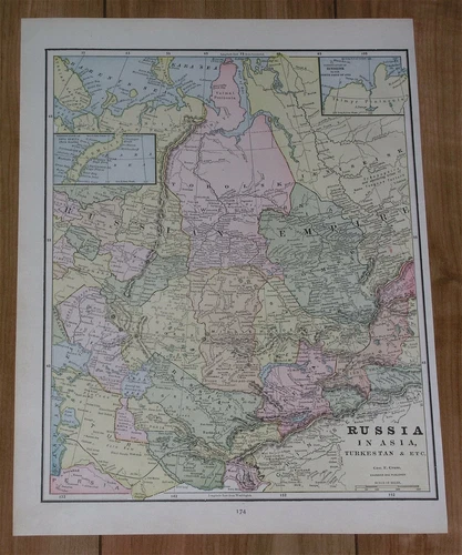 1893 MAP OF CENTRAL RUSSIA KAZAKHSTAN TURKESTAN / VERSO SUMATRA INDONESIA ASIA