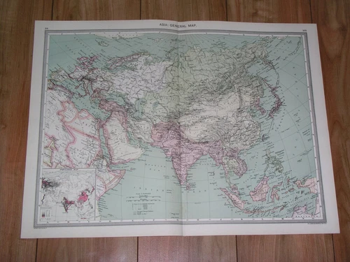 1908 ANTIQUE POLITICAL MAP OF ASIA SAUID ARABIA INDIA CHINA INDONESIA RUSSIA